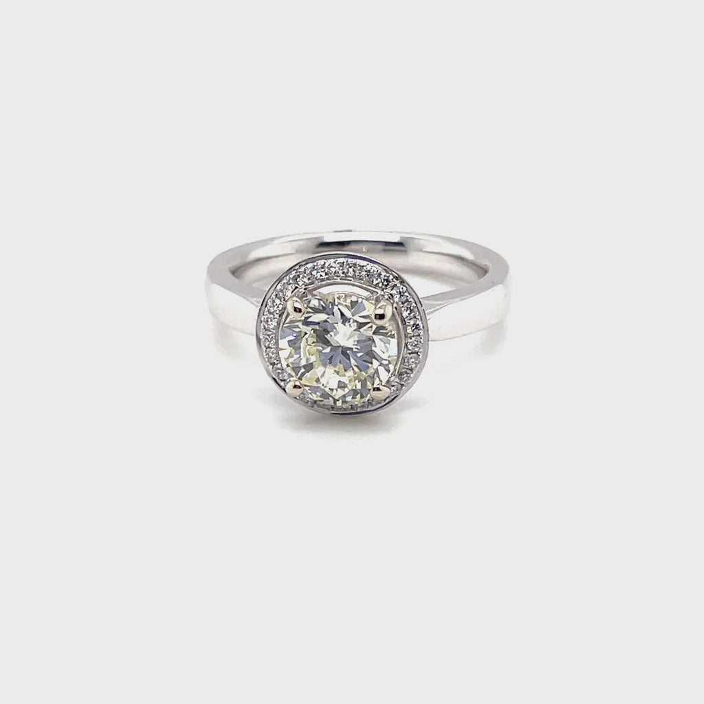 18ct White Gold Diamond Halo Ring (c. 1.57ct) - Size L