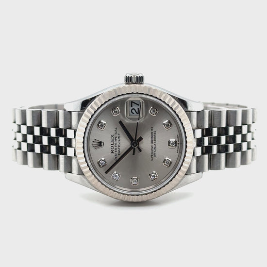 Pre-Owned Stainless Steel Silver Diamond Dot Dial Datejust Rolex (Midi)