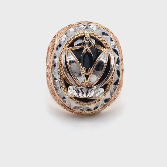 Zoom 14ct Bi-Colour Black Synthetic Stone Fancy Ring - Size Z + 1